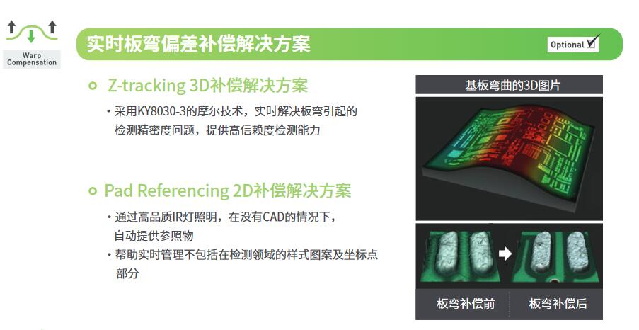- 提供带实时 PCB变形补偿的精确检测数据
