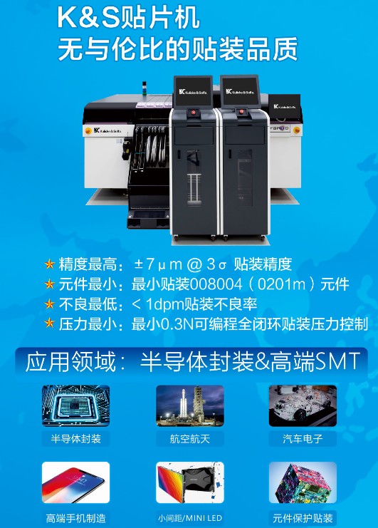 K&S的Hybrid系列蘑菇视频污入口,对PoP堆叠装配的技术和工艺进行了进行了友好的支持与优化。最小0.3N的可编程全闭环贴装压力控制,±7μm@3σ的贴装精度,以及<1dpm的贴装不良率,为高直通率提高有力的保障。