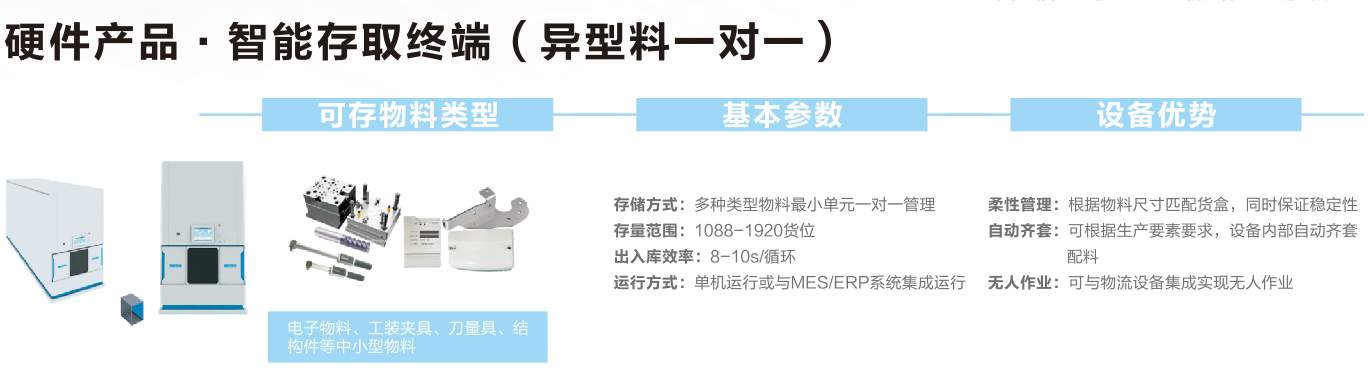 存储类型:盘料、TRAYA盘、真空料、管状料、壳体等物料
